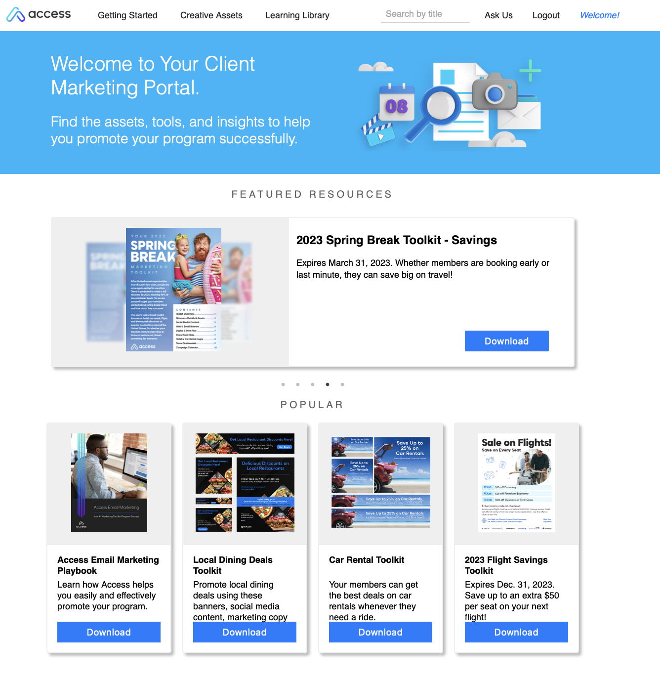 Created a one-stop-shop for 1,400 clients to access and use marketing tools, trainings, guides, and assets to promote our products and engage their users.